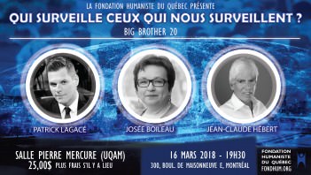 La conférence Qui surveille ceux qui nous surveillent ? BigBrother 2.0 aura lieu le vendredi 16 mars 2018 à 19h30 à la salle Pierre-Mercure.